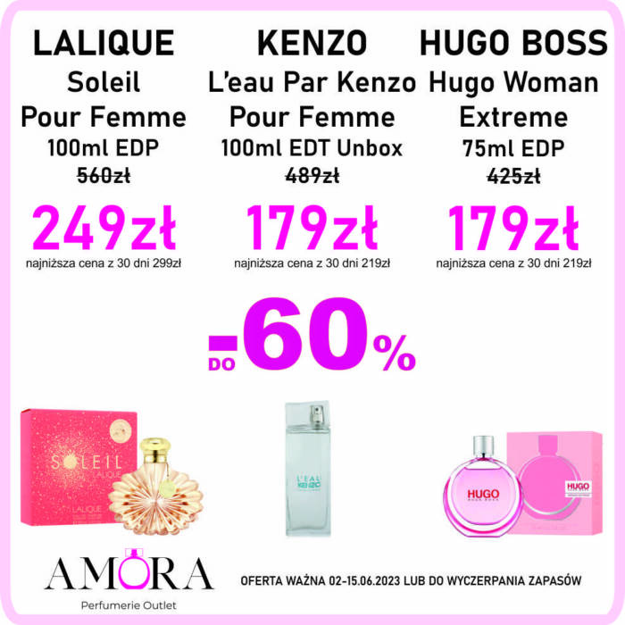 Perfumeria Amora jest Twoim najlepszym partnerem podczas poszukiwań zachwycających zapachów dla Niej i dla Niego. Regularnie dbamy o to, by na Naszych półkach znalazły się zarówno klasyki marek takich jak: Dior, Chanel, YSL, Giorgio Armani czy Chloe, które niezmiennie cieszą się ogromną popularnością jak i marki niszowe a wśród nich Montale, Tom Ford czy Lalique. To w Perfumerii Amora znajdziesz zapachy na każdą okazję i dostosowane do każdej pory roku. Poszukujesz pomysłu na prezent, perfum o wyjątkowej nucie a może szukasz inspiracji? To wszystko znajdziesz w Naszych Perfumeriach Amora.