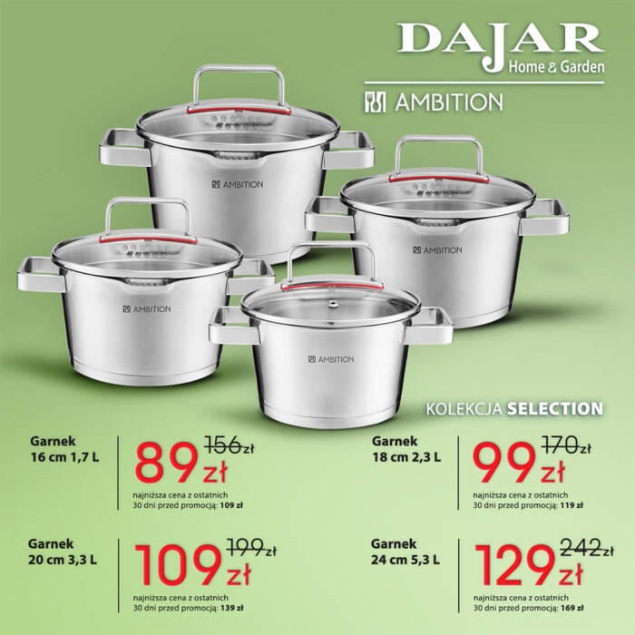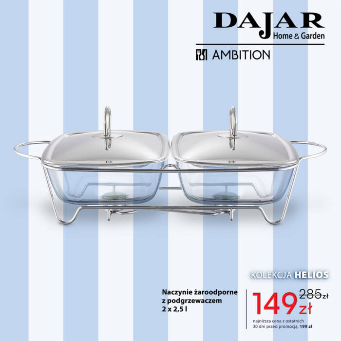 DAJAR Home&Garden oferuje szeroki wybór artykułów wyposażenia kuchni, jadalni i salonu, w przystępnych cenach. W naszych sklepach oferujemy: nowoczesną i oryginalną zastawę stołową francuskiej marki Luminarc, szeroki asortyment szkła marki Krosno oraz Pasabahce, doskonałej jakości akcesoria kuchenne marki Ambition, poręczne i trwałe noże oraz akcesoria marki Fiskars, unikatowe wyposażenie do kuchni i domu marki Practic, naczynia żaroodporne o wysokiej wytrzymałości marki Pyrex, a także dzbanki i butelki filtrujące wodę marki Aquaphor.