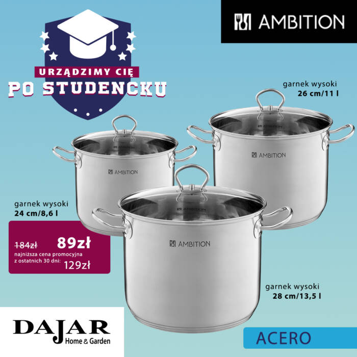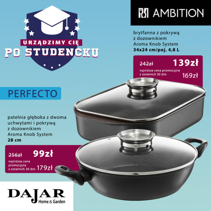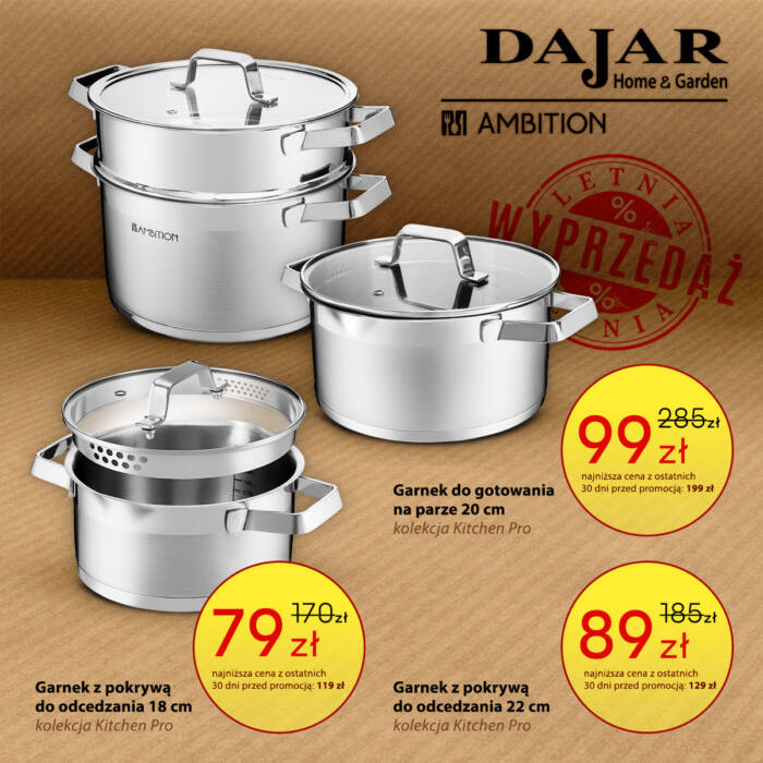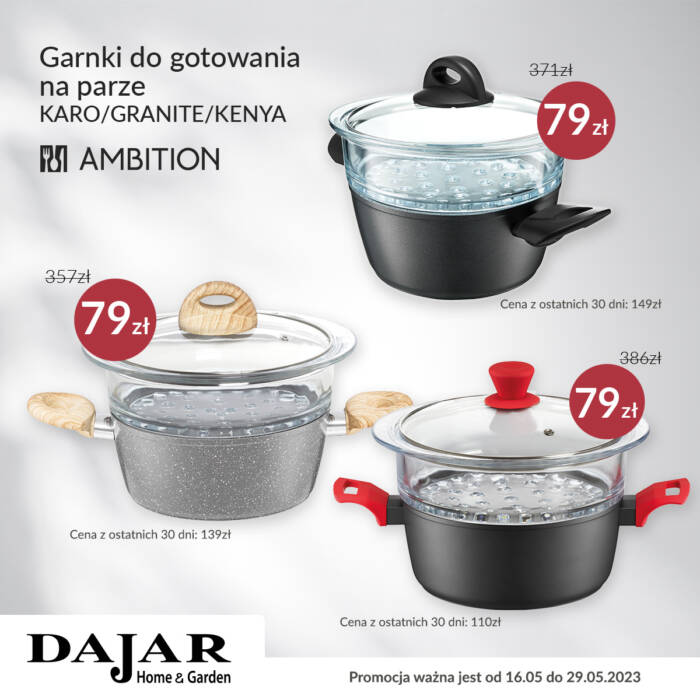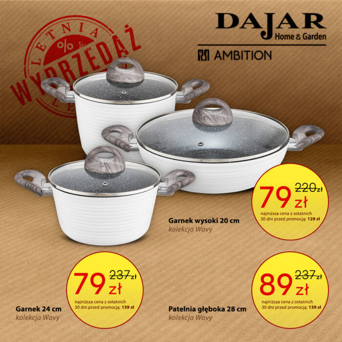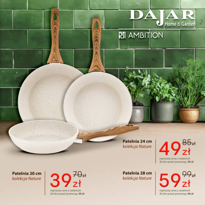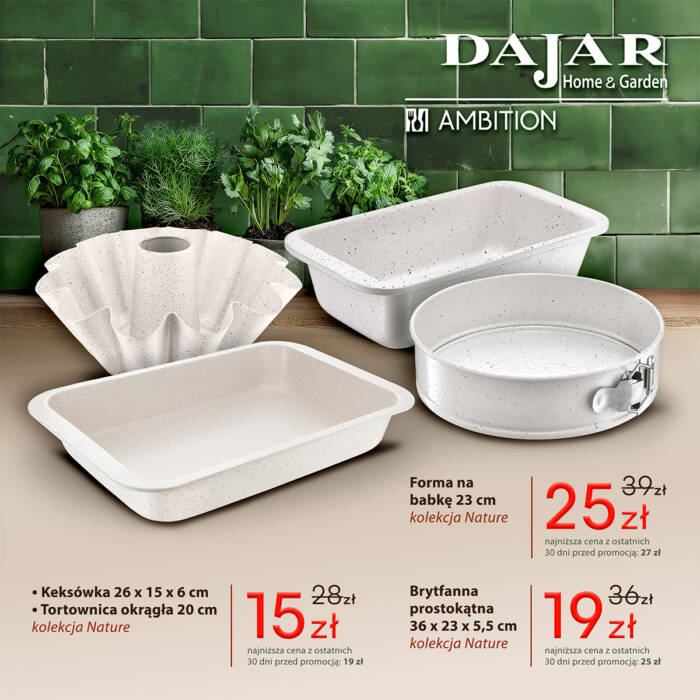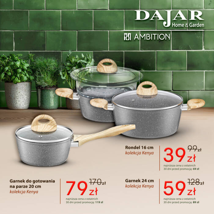 DAJAR Home&Garden oferuje szeroki wybór artykułów wyposażenia kuchni, jadalni i salonu, w przystępnych cenach. W naszych sklepach oferujemy: nowoczesną i oryginalną zastawę stołową francuskiej marki Luminarc, szeroki asortyment szkła marki Krosno oraz Pasabahce, doskonałej jakości akcesoria kuchenne marki Ambition, poręczne i trwałe noże oraz akcesoria marki Fiskars, unikatowe wyposażenie do kuchni i domu marki Practic, naczynia żaroodporne o wysokiej wytrzymałości marki Pyrex, a także dzbanki i butelki filtrujące wodę marki Aquaphor.