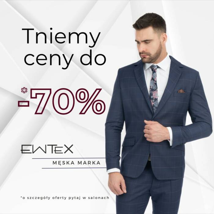 Elegancja na najwyższym poziomie! W salonie EWTEX czeka wyjątkowa oferta studniówkowa – –30% rabatu przy zakupie pełnego zestawu. Garnitur, koszula, mucha lub krawat… wszystko, czego potrzebujesz, by wyglądać perfekcyjnie w tę wyjątkową noc. Oferta obowiązuje od 12.11.2025 do 14.02.2026. O szczegóły zapytaj doradcę w salonie.