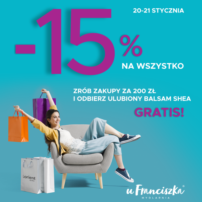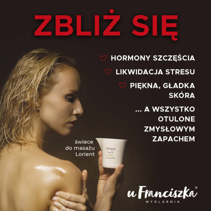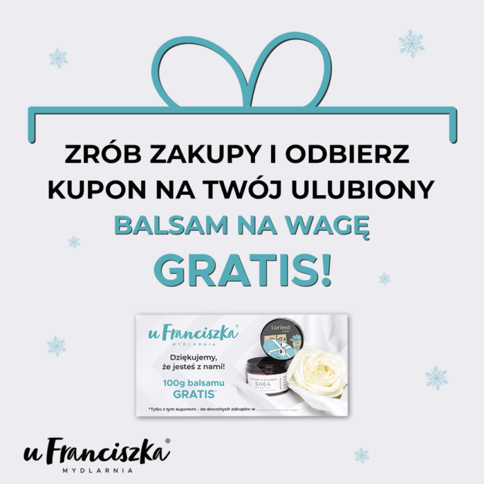 Mydlarnia u Franciszka to sieć sklepów kierujących się dewizą „Co natura daje dla ciała i dla ducha”. Oferta bogata w wiele naturalnych kosmetyków, spełnia oczekiwania nawet tych najbardziej wymagających. Syryjskie skarby Aleppo, francuskie wyroby marsylskich mydlarzy, marokański eliksir młodości, czy bogactwo Morza Martwego kuszą najlepszą jakością, dostępnymi cenami, a przede wszystkim nieocenionymi walorami pielęgnacyjnymi. Prostota podania połączona z profesjonalnym doradztwem to cechy, dzięki którym dopasowujemy się do Twoich potrzeb, po to by skutecznie działać na zmysły i urodę.