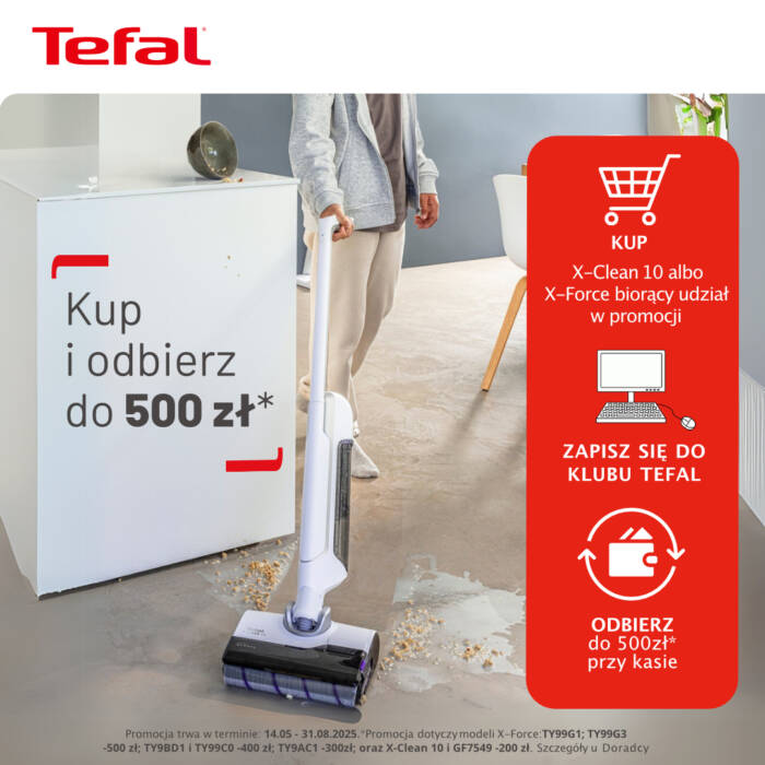 Poznaj X-Clean 10, innowacyjny bezprzewodowy odkurzacz myjący, który jednocześnie odkurza i myje podłogi, radząc sobie z każdym rodzajem zabrudzeń. Jego sprytna głowica dociera pod meble i do krawędzi, zapewniając maksymalną skuteczność.